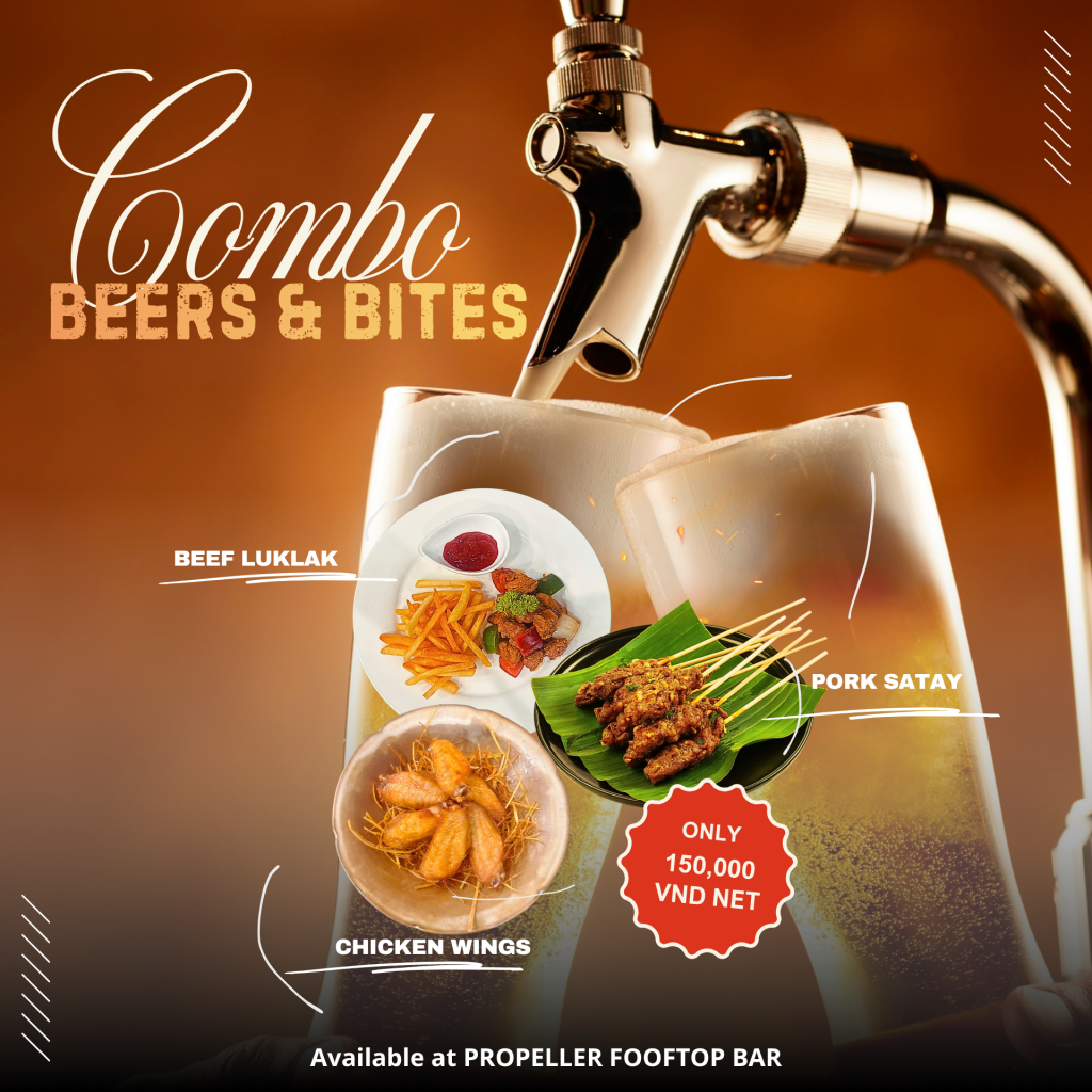 As a valued in-house guest at Bay Hotel Ho Chi Minh, you’re entitled to an exclusive 15% discount for all F&B services (excluding Room Service) at Propeller Rooftop Bar and